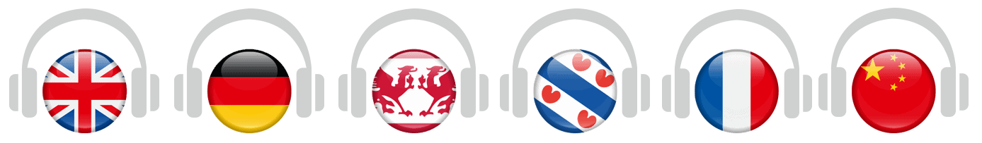 Wij bieden onze gratis audiotour voor volwassenen naast het Nederlands ook aan in het Stellingwerfs, Fries, Engels, Duits, Frans en Chinees.